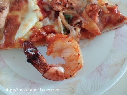 제 선택은 나쁘지 않았어요. 새로 나온 랍스터 슈림프 투움바의 경우 살짝 매콤함이 느껴지면서도 바다향이 나는 피자라서 해산물을 좋아하지 않는 저도 크게 거부감이 없었어요. 한 번은 먹어볼 만한 맛이었어요. 하지만 역시 저는 와일드 와일드 웨스트 스테이크가 더 입맛에 맞더라고요. 여기에 트리플 치즈를 조합했을 때 단짠단짠을 제대로 즐길 수 있는 것 같습니다. 프로마쥬 블랑 크림 치즈 무스가 달달한 맛이 있어서 간간한 스테이크 토핑과 맛의 조화가 좋습니다.