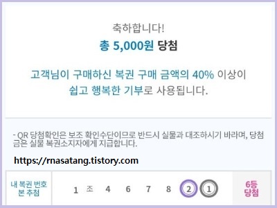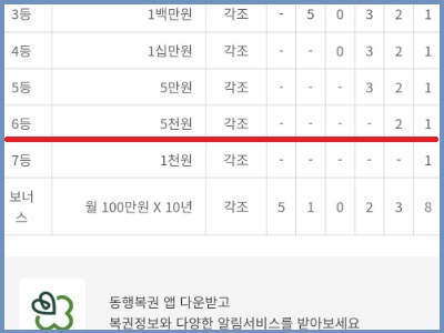 제가 당첨된 연금복권 6등 당첨금액은 5천원입니다.