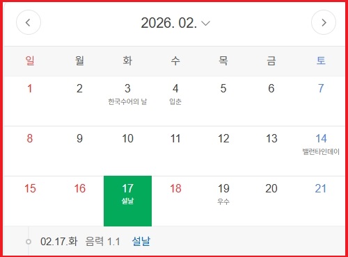 26년 2월에는 기다리던 설날 연휴가 있으며, 올해는 주말을 더해 총 5일간의 연휴가 이어집니다. 가족과 또는 연인과 특별하고 기억에 남는 추억을 만들기 충분한 시간이니, 미리 계획을 세워 연휴를 알차게 활용해 보세요.