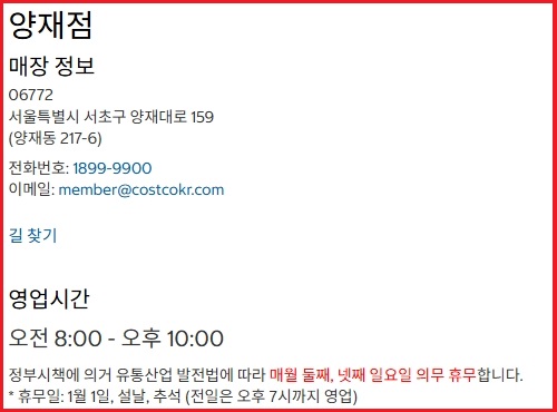 코스트코 양재점 휴무일과 영업시간