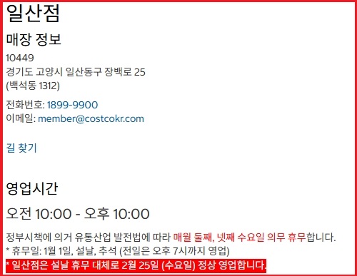 코스트코 일산점 휴무일 및 영업시간